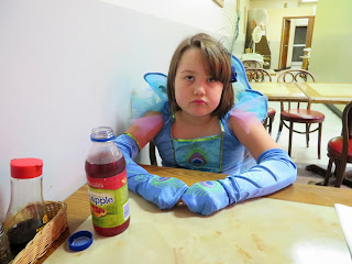 | K is a fairy peacock princess drinking a Snapple at the teriyaki place |